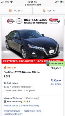 The price you see is the price you pay to buy a car at our dealerships near you. Visit our website or call your local dealership to learn more. Find low prices on our inventory of quality certified used cars today.