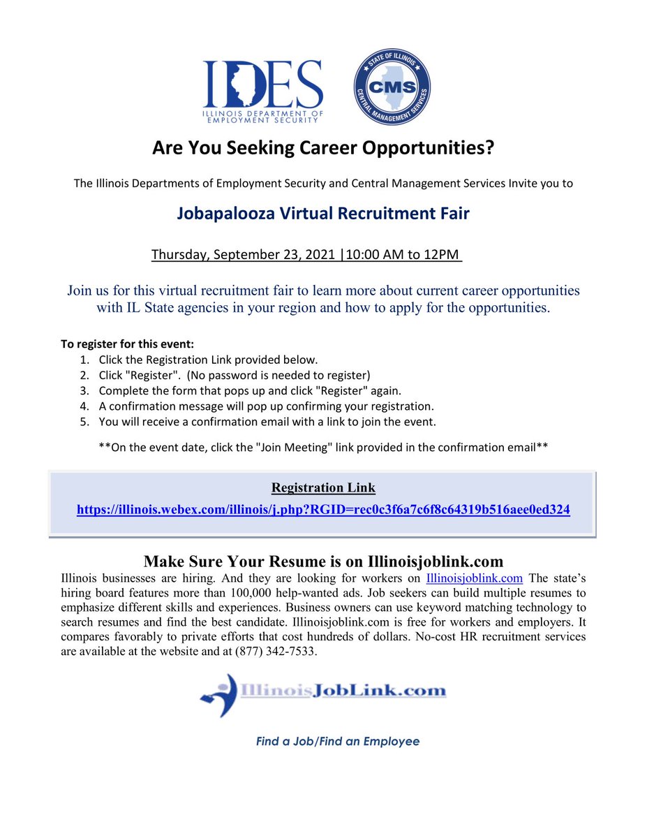 Illinois Department Of Employment Security On Twitter Are You Seeking Career Opportunities Join Us Next Week For Jobapalooza A Virtual Recruitment Fair To Learn More About Career Opportunities With Il State
